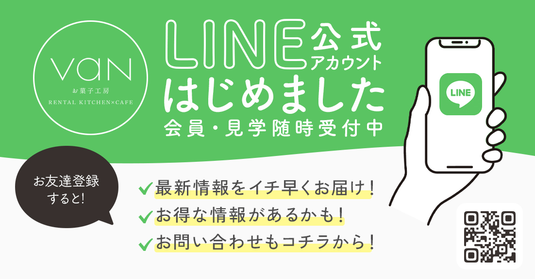 これでvanレンタルキッチンの一員として菓子工房vanをご利用いただけます。